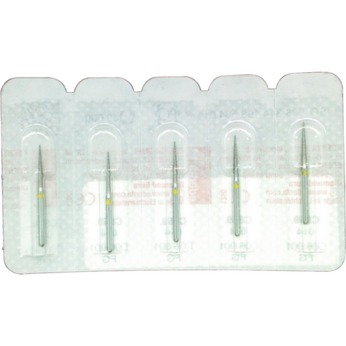 Omni diamanter 858 5 stk gul superfin, FG, figur 165 kjegleformet spiss, 8 mm, ISO 010