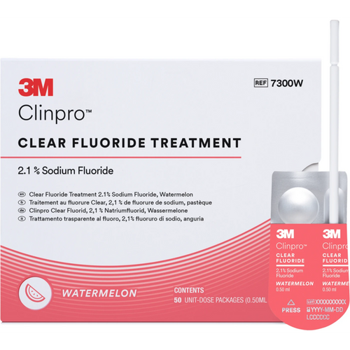 Clinpro Clear Fluoride 50 x 0,5 ml vannmelon, tilbehør